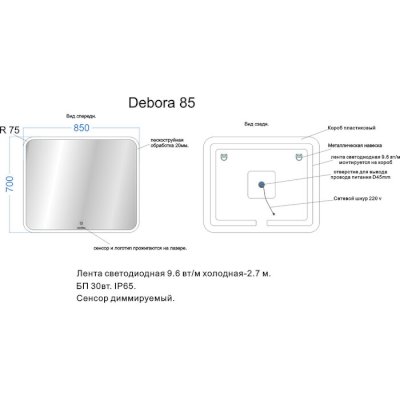 Светодиодное зеркало Debora (Veneciana) - за 17 664 руб. в Воскресенске. Купите на сайте voskresensk.onlinemarketmebeli.ru или по телефону 8(800)505-30-63 уже сегодня! Уточнить наличие, комплектацию, актуальную цену можно бесплатно у менеджера ежедневно. Закажите Светодиодное зеркало Debora (Veneciana) до конца акции! Доступна покупка в кредит, рассрочку. Доставим со склада или на заказ.