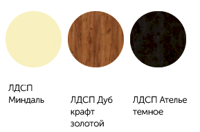 Цвет корпуса открытых полок: Ателье темное, Дуб Крафт золотой, Миндаль