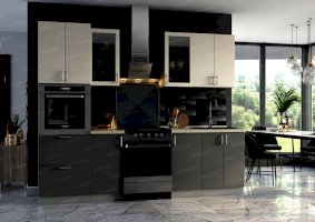 Специально для поклонников ультрасовременных интерьеров создан кухонный гарнитур «Хайтек». Мебель наделена всеми характеристиками этого стиля: стремительными линиями, монохромными цветами, глянцевыми поверхностями, минималисткой фурнитурой. Декоративные элементы не используются. Благодаря этим особенностям дизайна комплект не загромождает пространство.
