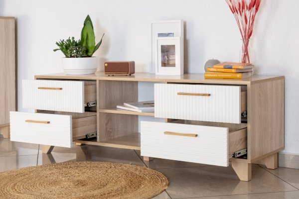 Тумба под ТВ — это необходимый предмет мебели для гостиной. Она занимает центральное место и выполняет важную функцию: размещение телевизора, ТВ-аксессуаров, личных вещей.
