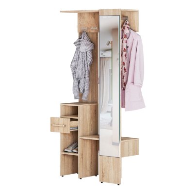 Прихожая Лига – идеальный выбор для небольшого пространства. Модель выполнена в цвете дуб сонома и будет прекрасно смотреться в современном интерьере. Вы с легкостью сможете расположить в ней все необходимые предметы гардероба благодаря открытым полкам, выдвижному ящику и зоне с крючками. Зеркало во весь рост – очень функциональное решение.