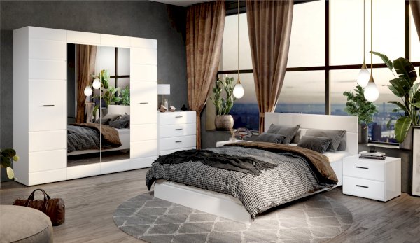 Распашной 4х дверный шкаф для одежды Йорк выполнен в современном стиле, сочетает в себе функциональность и эффектный внешний вид: строгая горизонтальная фрезеровка фасадов, контрастного черного цвета ручки и задняя стенка из ХДФ, элегантный белый цвет. Блеск глянцевых фасадов High Gloss из МДФ и зеркала наполняют комнату светом, делают ее просторнее. Внутри предусмотрены вместительные секции для белья и отделение со штангой. Мебель выполнена из экологически безопасных и надежных материалов.