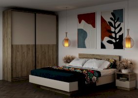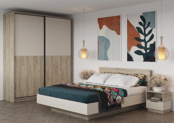 Цвет бежевый / дуб (сонома, молочный, феррара) / серый
