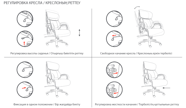 Тип механизма кресла: "топ-ган" качание с регулировкой под вес и фиксацией в 1 положении