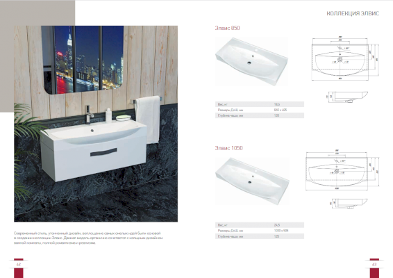 Современный стиль, утонченный дизайн, воплощение самых смелых идей были основой в создании коллекции Элвис. Данная модель органично сочетается с изящным дизайном ванной комнаты, полной романтизма и реализма.