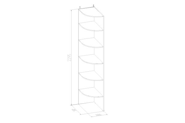 Стеллаж с открытыми закругленными полками для мелочей. Украшает боковину шкафа, предоставляя дополнительное место для хранения. Навешивается на стену за подвесы. Собирается на правую и левую сторону из одного комплекта деталей.