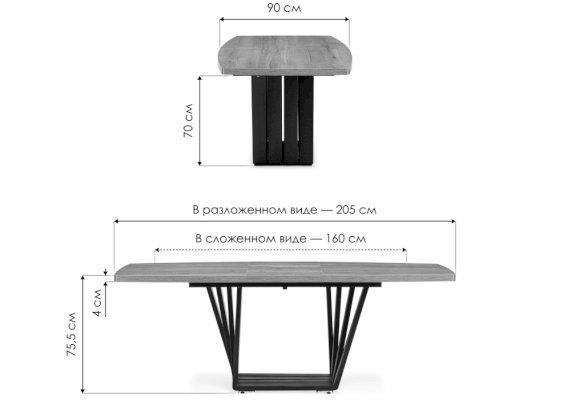 Длина разложенного столика, мм 2050