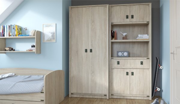 Шкаф - компактное и универсальное решение для хранения вещей. Декоративные накладки и профиль из МДФ по вертикальным краям корпуса закрывают острые края и придают шкафу более эффектный и надежной вид. Украшением служат стилизованные металлические ручки MARINE бронзового цвета и декоративные элементы в тон. Идеально компонуется со всеми модулями системы Валенсия.