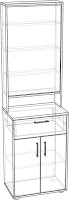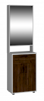 Тумба с зеркалом в прихожую. Снизу находиться вместительная тумба под обувь, сверху трельяж за закрытым зеркалом. Также имеется выдвижной ящик для различных мелких предметов. Может быть использована как дополнительный модуль ПР-7 или как самостоятельно изделие.