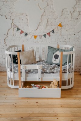 Выдвижной ящик на колесиках для кроватки Dreams Смарт. Для экономии места и хранения нужных вещей. Ящик имеет размеры 700*700мм, в который отлично уберутся игрушки или запасной комплект постельного белья.