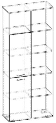 Применение задней стенки из ЛДСП (в ячейках с фасадами) позволяет использовать данный стеллаж для зонирования пространства (чтобы предотвратить опрокидывание, необходимо обеспечить крепление стеллажа к стене).
