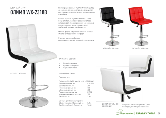Барный стул Олимп (Эколайн) - за 7 597 руб. в Воскресенске. Купите на сайте voskresensk.onlinemarketmebeli.ru или по телефону 8(800)505-30-63 уже сегодня! Уточнить наличие, комплектацию, актуальную цену можно бесплатно у менеджера ежедневно. Закажите Барный стул Олимп (Эколайн) до конца акции! Доступна покупка в кредит, рассрочку. Доставим со склада или на заказ.