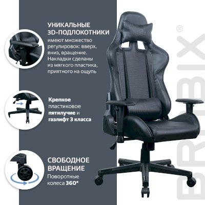 BRABIX "GT Carbon" – кресло, которое обеспечит долгие игровые сессии комфортом. 3D-подлокотники обладают множеством регулировок - бесспорное преимущество среди игровых кресел. Текстура «карбон» подчеркнет индивидуальный стиль владельца.