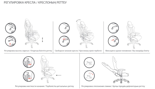 Модель оснащена механизмом качания «топ-ган» с регулировкой под вес пользователя и возможностью фиксации в рабочем положении.