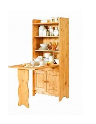 В корпус шкафа встроен откидной стол. Такая конструкция - просто находка для небольших помещений.