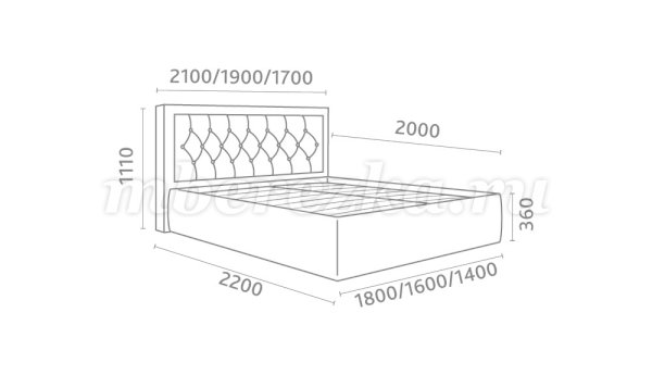 Кровать доступна в двух размерах:  1400, 1600