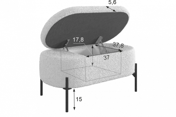 Внутри пуфа находится вместительное пространство для хранения, где вы можете разместить различные предметы, например, книги или косметику. Это делает пуф "Барни" не только удобным местом для отдыха, но и практичным элементом интерьера.