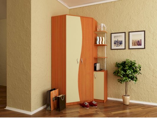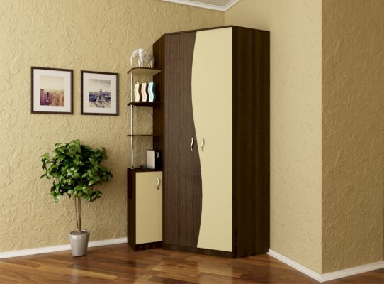 Вместительный угловой шкаф — эффективное использование пространства. Изогнутые линии фасадов придадут вашей комнате элегантность.