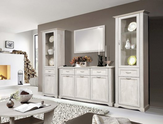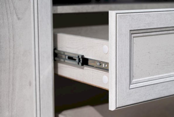 По размерам и конструкции похож на шкаф-пенал «Сохо» 32.04-01, но в верхней секции сплошную глухую дверцу конструкторы заменили на прозрачную стеклянную – и модель совершенно изменяла свой функционал! Она превратилась в абсолютно другую, совершенно самостоятельную единицу и даже поменяла «географию»: из прихожей она «переехала» в столовую и гостиную и полностью сменила свой «внутренний мир». В верхнем отсеке идеально смотрится и гордо выставляет себя напоказ фамильный сервиз и другая посуда, в выдвижном ящике хранятся столовые предметы, а в нижнем – на двух полках за сплошной дверцей  – размещается посуда поскромнее, либо какие-то вещи, которые дороги сердцу хозяйки, но не предназначены для посторонних глаз. Как и в других модулях коллекции, нагрузка на стеклянные полки – до 3 кг, на полки из ЛДСП – до 5 кг. Так что не переусердствуйте! Благодаря современным технологиям дверцам и выдвижным ящикам не нужны доводчики – они легко и дружелюбно распахиваются и выдвигаются навстречу  по первому желанию хозяев. Шариковые направляющие обеспечивают очень плавный ход. Дверцы и ящики снабжены металлическими ручками, которые учитывают анатомию ладони, поэтому ими очень удобно пользоваться.
