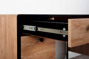 Стильный и эргономичный письменный стол Брюс – ваше комфортное рабочее место. Каркас из металла, столешница из МДФ с закруглением и тактильно приятные металлические ручки с накаткой – визитная карточка модели. Также стол имеет регулируемые опоры и ящики с направляющими полного выдвижения.