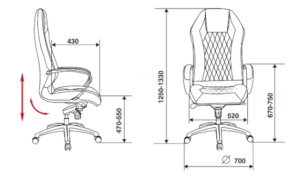 Высота кресла: 1250-1330