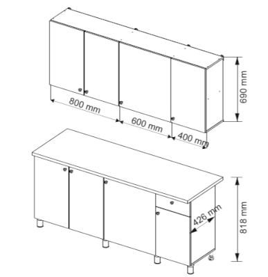 Высота нижних шкафов, мм 774 / 818