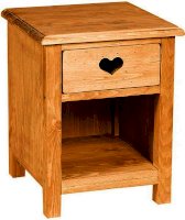 Аккуратная тумбочка для спальни из натурального дерева в стиле Прованс. Ящик декорирован резным сердцем, которое одновременно является ручкой для выдвижения ящика.