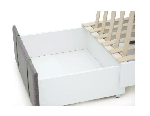 Ортопедическое основание, состоящее из 11 деревянных лат, выдержит нагрузку до 150кг. Подлокотники служат защитными бортиками во время сна. Нет острых углов, все детали мягкие.