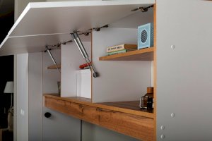 • Распашные фасады на четырехшарнирных петлях.