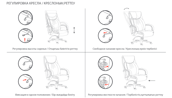 Тип механизма кресла: "топ-ган" качание с регулировкой под вес и фиксацией в 1 положении