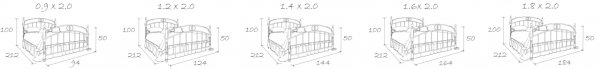 Размер спального места 90*200 / 120*200 / 140*200 / 160*200 / 180*200