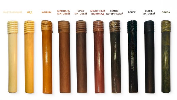 Цвета: натуральный, мед, коньяк, миндаль матовый, орех матовый, молочный шоколад, темно-коричневый, венге, венге матовый, олива.