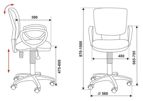 Высота с подлокотниками: 665-795