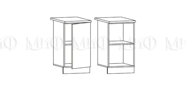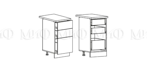Глубина нижних шкафов без учета столешницы: 444 мм, с учетом столешницы 600 мм