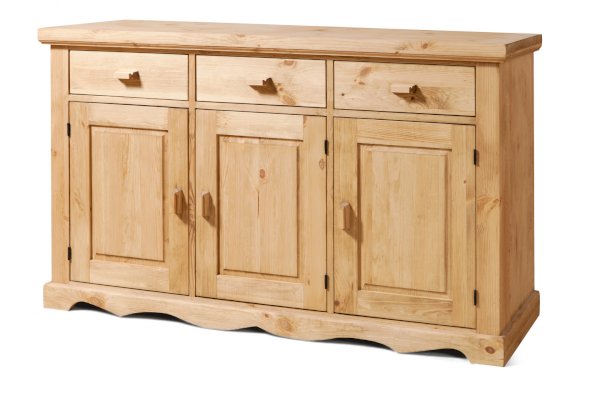 Тумба KOB33 - за каждой дверкой полка. 3 выдвижных ящика на деревянных полозьях.